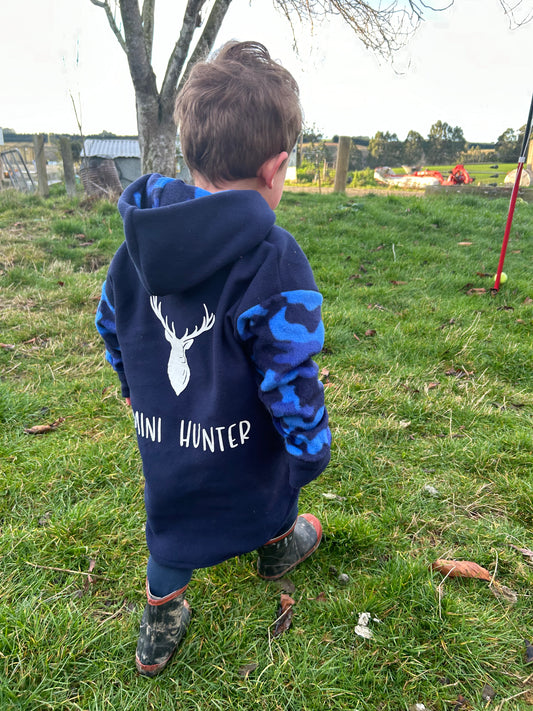 Mini Hunter Stag Navy Fleece Hoodie